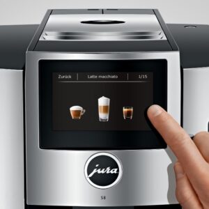 The stylish S8 creates the full range of specialities from espresso to latte macchiato to a masterful standard of quality. With just a touch on the colour touchscreen display, one of 15 different specialities flows into the cup. This is thanks to several outstanding innovations. The AromaG3 grinder is now even more precise and twice as fast, yet preserves all the delicious aroma of the coffee beans.